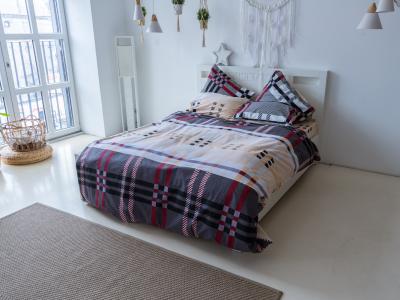 Постельное белье / Фланель / Евро / КПБ КЛЕТКА БУРГУНДИЯ Евро (70х70)